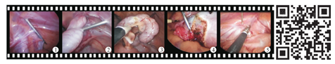 手术切口同急性阑尾炎手术,腹壁吻合器于患侧下腹部穿刺入腹,抓取患侧内环口下方腹膜并切开,游离精索,用Hem-o-lock夹或慕丝线结扎精索后离断精索。