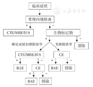 出现可疑CD临床症状时,应首先行常规内镜检查(结肠镜、上消化道内镜),疑诊CD应通过影像学手段评估小肠是否受累;对于结肠镜检查阴性但炎性标记物异常的患者,可根据有无梗阻症状进行影像学或CE检查;对于病变局限在小肠者,可考虑BAE检查及活检。见图1。