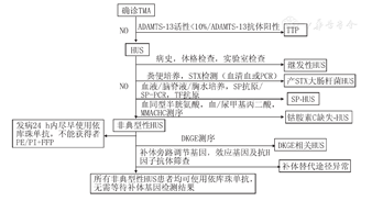 注:TMA:血栓性微血管病;ADAMTS-13:含Ⅰ型血小板结合蛋白基序的解聚蛋白样金属蛋白酶13;TTP:血栓性血小板减少性紫癜;HUS:溶血尿毒综合征;STX:志贺毒素;SP:肺炎链球菌;MMACHC:甲基丙二酸尿症和高胱氨酸尿症C型;DKGE:甘油二酯酰激酶ε;PE:血浆置换;PI:血浆输注;FFP:新鲜冷冻血浆 TMA:thrombotic microangiopathy;ADAMTS-13:a disintegrin-like metallopeptidase with thrombospondin type 1 motif 13;TTP:thrombotic thrombocytopenic purpura;HUS:hemolytic uremic syndrome;STX:Shiga toxin;SP:Streptococcus pneumoniae;MMACHC:Methylmalonic aciduria and homocystinuria type C protein ;DKGE:diacylglycerol kinase epsilon;PE:plasma exchange;PI:plasma infusion;FFP:fresh freezing plasma