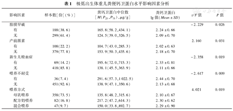 极低出生体重儿粪便钙卫蛋白水平影响因素分析