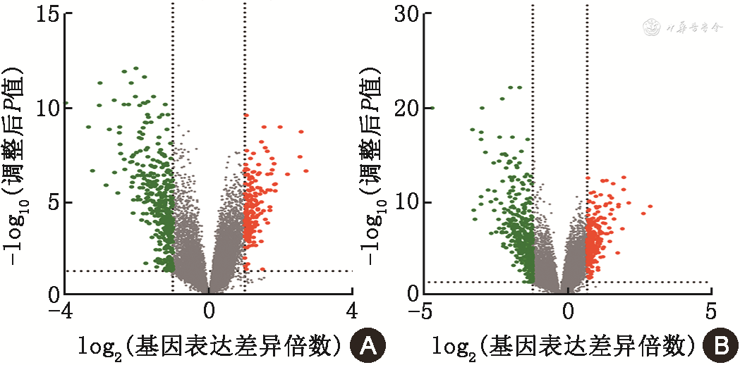 注:红点为上调基因;绿点为下调基因
