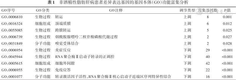 非酒精性脂肪肝病患者差异表达基因的基因本体(GO)功能富集分析