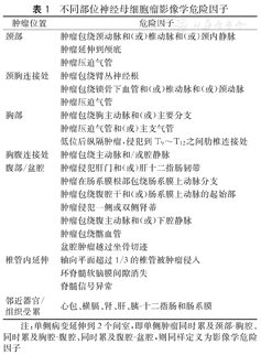注:单侧病变延伸到2个间室,即单侧肿瘤同时累及颈部-胸腔、同时累及胸腔-腹腔、同时累及腹腔-盆腔,则同样定义为影像学危险因子