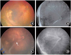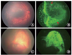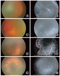 对于ROP的复发,应特别关注附加病变(2个象限以上的视网膜血管扩张和迂曲)的再次出现,按照ETROP研究的治疗标准进行追加治疗(图4),眼底荧光造影对明确有无视网膜新生血管及其范围很有帮助。