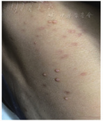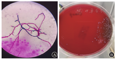 患者男,45岁,因"发热、咳嗽1个月余,神志改变半个月余"于2021年1月29日入温州医科大学附属衢州医院。1个月余前患者出现发热,伴咳嗽、咳痰,至温州医科大学附属衢州医院门诊就诊,予左氧氟沙星抗感染治疗后,患者上述症状好转。半个月前,患者出现神志改变,胡言乱语,答非所问,反复发热,至外院就诊(具体不详)后症状无明显好转。2 d前至温州医科大学附属衢州医院发热门诊就诊,实验室检查:血红蛋白为93 g/L,中性粒细胞比例为0.874,淋巴细胞绝对值为0.49×109/L,红细胞计数为3.34×1012/L,血小板计数为87×109/L,超敏CRP为164.06 mg/L,白细胞计数为4.7×109/L,淋巴细胞比例为0.105;ALT为82.5 U/L,肌酐为68.3 μmol/L,钾为4.13 mmol/L,钠为127.6 mmol/L,氯为92.6 mmol/L,脂肪酶为63.1 U/L,淀粉酶为79.0 U/L。于急诊留观,予头孢噻肟、地塞米松抗炎后,行实验室检查:血红蛋白为86 g/L,淋巴细胞比例为0.045,血小板计数为66×109/L,中性粒细胞比例为0.937,红细胞计数为3.23×1012/L,白细胞计数为7.3×109/L;超敏CRP为46.80 mg/L;ALT为405.0 U/L,钙为1.89 mmol/L,乳酸脱氢酶为1 020.0 U/L,钠为128.7 mmol/L,氯为93.7 mmol/L,脂肪酶为74.0 U/L,肌酐为54.8 μmol/L,钾为3.96 mmol/L,淀粉酶为75.4 U/L。胸部CT检查:左肺上叶舌段少量慢性炎症,右侧少量胸膜粘连。经感染科会诊后,拟"感染性发热"收住入院。否认慢性病及传染病史,否认吸毒史。体格检查:体温为36.7 ℃,心率为113次/min,呼吸为20次/min,血压为121/84 mmHg(1 mmHg=0.133 kPa),血氧饱和度为100%,呈谵妄状态,胡言乱语,精神一般,颈软,左颈部可触及多发淋巴结肿大,不融合,全身可见红色丘疹(图1),巩膜无黄染,两肺听诊呼吸音粗,未闻及干、湿啰音,心脏听诊律齐,未闻及杂音,腹部平软,未及压痛和反跳痛,肝脾肋下未及,移动性浊音阴性,双下肢无水肿,双上肢肌张力增高,右侧巴宾斯基征阴性,左侧巴宾斯基征可疑阳性。入院诊断:感染性发热;颅内感染?肝功能异常;血小板减少;贫血。实验室检查:血红蛋白为84 g/L,血小板计数为66×109/L,白细胞计数为6.6×109/L;ALT为332.3 U/L,AST为717.7 U/L,白蛋白为23.2 g/L,总胆红素为18.2 μmol/L,肌酐为65.5 μmol/L;超敏CRP为126.98 mg/L;PT为15.6 s,INR为1.30,D-二聚体为84.03 mg/L,纤维蛋白原为2.88 g/L;降钙素原为2.090 μg/L;ESR为28 mm/1 h;三碘甲状腺原氨酸为0.66 nmol/L,促甲状腺素为2.508 μIU/mL,游离甲状腺素为12.43 pmol/L,游离三碘甲状腺原氨酸为2.72 pmol/L。CMV抗体IgG>250.00 AU/mL,CMV抗体IgM为1.19 AU/mL。痰结核分枝杆菌实时荧光定量核酸扩增结果为阴性。乙型肝炎、丙型肝炎、丁型肝炎、戊型肝炎和肾综合征出血热抗体均阴性。β-D-葡聚糖试验>1 000.00 ng/L。弓形虫抗体IgM、IgG均为阴性。补体C3为0.28 g/L,补体C4为0.01 g/L,IgM为0.77 g/L,IgA为1.45 g/L,IgG为17.65 g/L。头颅MRI检查未见异常。予美罗培南(1.0 g/次,每8 h 1次,静脉滴注)、盐酸多西环素肠溶胶囊(0.1 g/次,2次/d,口服)、伏立康唑(200 mg/次,每12 h 1次,口服)抗感染,完善血培养及腰椎穿刺,同时脑脊液(DNA+RNA)行宏基因组学第二代测序(metagenomics next generation sequencing,mNGS)技术检测,脑脊液压力为150 cmH2O(1 cmH2O=0.098 kPa),脑脊液常规检查:无色,澄清,潘氏试验阴性,有核细胞计数为0。脑脊液生物化学检查:氯化物为116.5 mmol/L,葡萄糖为2.69 mmol/L,蛋白质定量为0.29 g/L,乳酸脱氢酶为26.3 U/L。脑脊液隐球菌检查未见隐球菌。2月2日血培养(图2)和药物敏感试验示马尔尼菲篮状菌(Talaromyces marneffei, TM)。衢州市CDC进行HIV抗体检测确认阳性,CD4+T淋巴细胞计数为13.6/μL,脑脊液mNGS检出TM(序列数为157)、HIV(序列数为3)。改予两性霉素B(1 mg/d,逐渐加量至25 mg/d,静脉滴注)联合地塞米松(2 mg,1次/d,静脉注射)抗真菌治疗,更昔洛韦(250 mg/次,每12 h 1次,静脉滴注)抗病毒治疗。2月20日开始HAART,予富马酸替诺福韦二吡呋酯(300 mg,1次/d)+拉米夫定(300 mg,1次/d)+依非韦伦(400 mg,每晚1次)口服。经上述治疗后,患者神志转清,无胡言乱语,对答切题,体温恢复正常,复查血常规、血清生物化学和炎症指标恢复正常。2月23日患者出院,予伊曲康唑(200 mg,每12 h 1次,口服)抗真菌治疗。随访至6月30日未见异常。