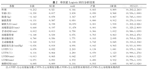 | 封堵器类型 | -0.148 | 0.538 | 0.076 | 0.783 | 0.863 | (0.300,2.476) |