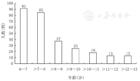 本研究共收集282份ADHD待确诊患儿的评估资料。男219例,女63例,男女= 3.51.0,具体年龄分布及人数见图2,年龄(8.0±1.6)岁。