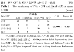 IVA-CPT and SNAP-Ⅳ to evaluating the consistency of hyperactivity-impulsive