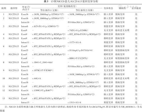 注:NICCD为希特林蛋白缺乏所致新生儿肝内胆汁淤积症;致病性参考基因版本为GRCh37/hg19,转录本编号为NM_003030.3;-为无数据