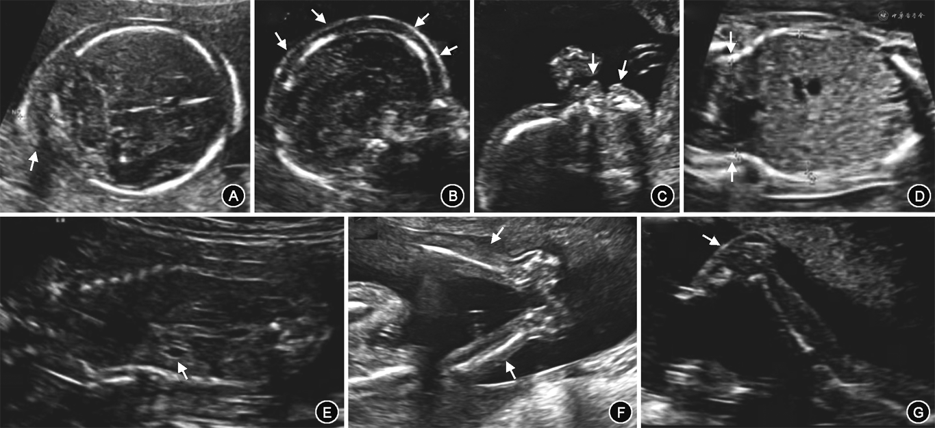 3.小结:在缺乏先证者的情况下,连续、详细的产前超声检查对于早期诊断FADS有着重要价值。FADS的相关超声征象最早可在孕12周发现[9]。因此,早孕期产前超声检查时,应细致观察胎儿的运动与结构,如发现有胎儿运动缺乏、姿势异常等征象,应考虑诊断FADS,并行全外显子组测序以证实。连续、详细的产前超声检查不仅可为产前诊断技术的选择提供可靠的依据,而且对于遗传咨询及孕期监测与管理有着重要的价值。