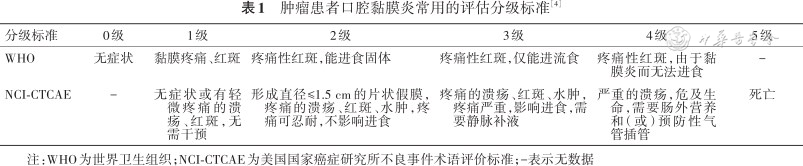 肿瘤患者口腔黏膜炎常用的评估分级标准[4]