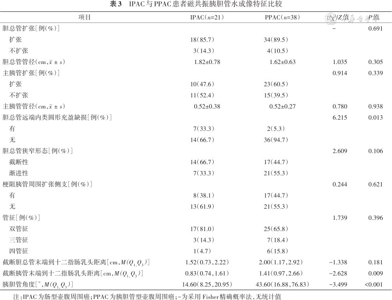IPAC与PPAC患者磁共振胰胆管水成像特征比较