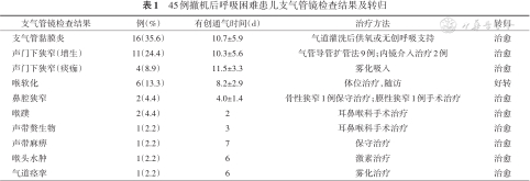 45例撤机后呼吸困难患儿支气管镜检查结果及转归