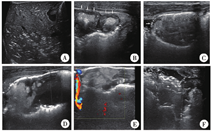 所用仪器为Philips iU22型彩色多普勒超声诊断仪:C5-1凸阵探头,频率1~5 MHz;L12-5线阵探头,频率5~12 MHz;GE Logic E9彩色多普勒超声诊断仪,C1-6凸阵探头,频率1~6 MHz;ML6-15线阵探头,频率6~15 MHz。