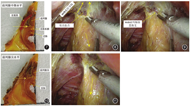 观看手术视频时,将NVB前列腺部当做一个整体(包括NVB血管神经组织+脂肪垫),直肠前间隙分离过程中,在腹膜反折上1.0 cm处切开腹膜,沿邓氏筋膜前间隙向下分离,在距两侧精囊腺底部上0.5 cm相当于两侧NVB内侧水平,呈倒"U"形弧形切断邓氏筋膜,进入邓氏筋膜后间隙,从而保护NVB精囊腺部,并沿着邓氏筋膜后间隙向下分离至肛提肌水平。在直肠前壁游离过程中,观察不同高度NVB脂肪垫形态和走行,并与同高度水平的尸体研究结果进行比对。
