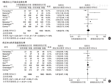 有3篇文献报道了DFS[9,13,19];其异质性检验提示各研究间异质性较小(P=0.29,I2=18%),因此采用固定效应模型进行分析,结果显示,TNT组与nCRT组的DFS相近(HR=0.86,95%CI:0.71~1.05,P=0.14),见图2B。