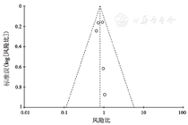 以OS为指标进行了漏斗图绘制,散点大致分布在倒置的漏斗内,可以认为潜在发表偏倚风险较小,见图5。