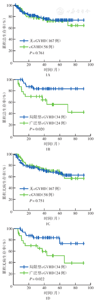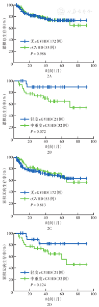 血液病患者allo-HSCT后cGVHD发生率高,累及部位多,cGVHD可降低患者复发率,但严重cGVHD可增加患者死亡。aGVHD是发生cGVHD的唯一独立影响因素。