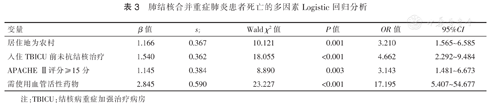 肺结核合并重症肺炎患者死亡的多因素Logistic回归分析