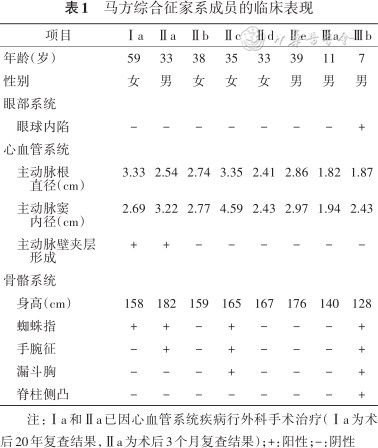 MFS患者心血管系统、眼和骨骼等结缔组织的损伤会随着年龄的增长逐渐增加,因此通过及时的临床辅助检查和基因筛查进行早期诊断和干预,对于预防患者猝死等不良事件、提高MFS家庭的生活质量和优生优育具有重要意义,值得临床医师关注。对于MFS家族成员建议进行早期检查,包括彩色多普勒超声心动图、主动脉CT血管造影(CTA)等。此外,基因检测对MFS的早期诊断、长期随访、降血压治疗和把握预防性手术时机具有重要意义[24]。