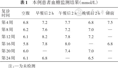 患者 男,37岁,主因“发现血糖升高1年”就诊我科门诊。患者1年前因肥厚型梗阻性心肌病就诊外院时发现血糖升高,多次静脉空腹血糖大于7.0 mmol/L(参考值3.9~6.1 mmol/L),糖化血红蛋白(glycosylated hemoglobin,type A1c,HbA1c)6.6%(参考值4%~6%),空腹C肽3.57 ng/ml(参考值1.1~4.4 ng/ml),无明显口干、多尿、多饮、多食、体重下降,无尿中泡沫增多、下肢水肿,无视物模糊、视力下降,无手足麻木、发凉、针刺样感觉,无下肢疼痛、间歇跛行等不适,诊断T2DM。给予西格列汀(100 mg,1次/d)联合二甲双胍(0.5 g,3次/d)降糖,控制饮食,规律锻炼,每顿主食1~2两,每周锻炼3~4次,每次40~60 min,自测空腹血糖6.0~7.2 mmol/L,餐后2 h血糖6.0~8.5 mmol/L,无心悸、手抖、出汗等不适。8个月前就诊我科门诊,要求简化降糖方案,减少用药次数,外院查HbA1c 6.4%。