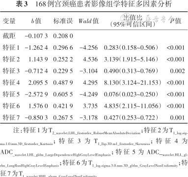 168例宫颈癌患者影像组学特征多因素分析