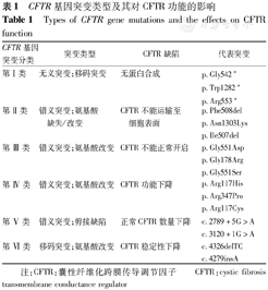 注:CFTR:囊性纤维化跨膜传导调节因子 CFTR:cystic fibrosis transmembrane conductance regulator
