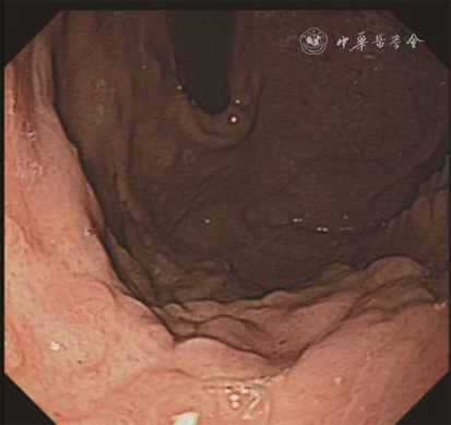 入院查体:神志清,面色苍白,下腹轻压痛,无反跳痛。辅助检查:铁代谢示血清铁降低(3.3 μmol/L),铁蛋白降低(3.0 μg/L),不饱和铁结合力升高(80.3 μmol/L),总铁结合力升高(83.6 μmol/L),转铁蛋白饱和度降低(4%)。钙卫蛋白升高(361 μg/g)。超敏C反应蛋白、叶酸、维生素B12、抗核抗体、抗中性粒细胞胞质抗体、免疫球蛋白及补体均无殊。胃镜示胃体黏膜弥漫性结节样隆起(图2),胃窦及十二指肠黏膜无殊。RUT阴性。胶囊内镜及结肠镜无殊。组织病理学示胃体黏膜呈中度慢性炎,部分上皮脱落,隐窝上皮内淋巴细胞增多(>25个/100个表面上皮),淋巴细胞无异型。上皮下见斑片状胶原沉积(图1D),最厚处68 μm。胃体嗜酸粒细胞计数约18个/高倍镜视野。胃窦、小肠及结直肠黏膜无异常。Masson三色及天狼猩红染色见不规则胶原沉积;美兰、刚果红染色阴性。诊断为CG。