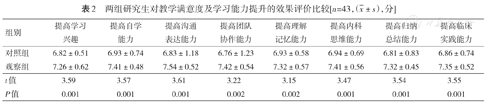 两组研究生对教学满意度及学习能力提升的效果评价比较[n=43,(