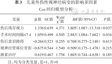 儿童外伤性视神经病变的影响多因素Cox回归模型分析