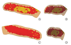 肠管由内胚层和中胚层构成,内胚层分化为肠管的黏膜上皮层,而中胚层分化为黏膜下层内的血管、肠壁肌层等[12,13,14,15,16]。根据本研究结果我们提出:暂时充盈期肠管内的大量填充细胞群内应该既有上皮细胞,也有间充质细胞。发育过程中,由于相同胚层细胞具有同向聚集作用和特性[17,18,19,20],肠管充盈期上皮细胞聚集构成液泡囊壁,并进一步融合构建出黏膜上皮细胞和腺体;而充盈期的间充质细胞分化和参与构成黏膜下层内的血管、黏膜肌层以及肠壁肌层组织等。本研究后续将聚焦暂时充盈期肠管,采用组织化学染色或免疫荧光的方法检测其内具有"干"性特征细胞,包括间充质干细胞和上皮干细胞,并进一步检测不同发育信号介导在肠管分化过程中的作用。人早期胚胎稀有和连续切片的相对珍贵,聚焦的胚胎相对少,这也是本研究的不足,课题组在后续研究中,会继续不断补充和丰富胚胎切片资源库,呈现更加完整的发育结构。
