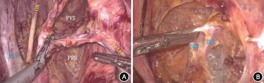 注:PRS为直肠侧间隙;UA为子宫动脉;DUV为子宫深静脉;EIV为髂外静脉;IIA为髂内动脉;Ureter输尿管;ON为闭孔神经;PVS为膀胱侧间隙
