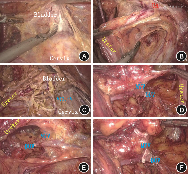 注:Bladder为膀胱Ureter为输尿管;Cervix为宫颈;VCLPV为膀胱宫颈韧带后叶血管;DUV为子宫深静脉;MVV为膀胱中静脉