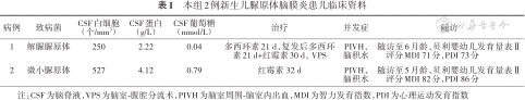 本组2例新生儿脲原体脑膜炎患儿临床资料