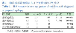 确诊或拟诊癫痫患儿2个年龄组的IPS反应