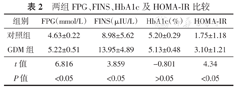 两组FPG、FINS、HbA1c及HOMA-IR比较