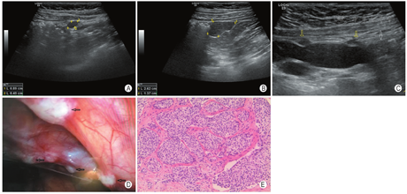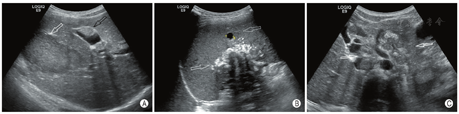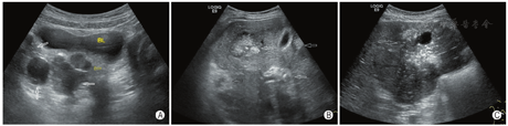 在术后随访中,本研究显示超声可及时发现复发病灶,复发灶的形态、回声与术前一致。在定期监测中,可见病灶逐渐增多、增大,直至侵犯、压迫相应组织器官,也可包绕肠道造成梗阻。超声在随访监测中可为临床治疗决策提供重要信息。