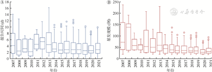 1. 资料来源:源自中国CDC突发公共卫生事件管理信息系统2007年1月1日至2021年12月31日全国诺如病毒急性胃肠炎疫情数据。根据每起疫情流行病学调查报告提取分析变量信息,建立疫情分析数据库。数据库变量包括报告省份、首例病例发病时间、疫情发生场所、感染来源、传播途径、发病数、波及人数、报告时间、末例病例发病时间、疫情结案时间、病原学检测结果等信息。