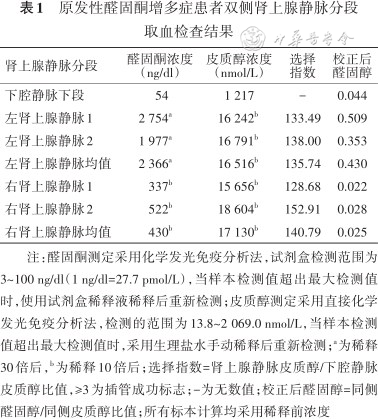 原发性醛固酮增多症患者双侧肾上腺静脉分段取血检查结果