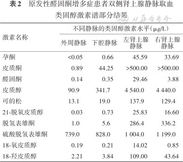 原发性醛固酮增多症患者双侧肾上腺静脉取血类固醇激素谱部分结果