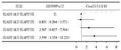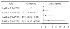 以复合终点事件作为终点,使用Cox比例风险模型计算与AST/ALT比值联合APTT相关的风险比(hazard ratio,HR)和95% CI。
