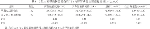 (2)对比了大面积烧伤后发生早期心肌损伤与未发生早期心肌损伤患者的病死率,且分析得出早期心肌损伤是大面积烧伤患者死亡的独立危险因素,对临床实践有较大的指导意义。