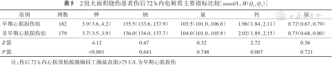 | 非早期心肌损伤组 | 179 | 4.95(4.62,5.42) | 0.470(0.433,0.504) | 149±18 | 16.3(12.7,21.0) | 13.1(8.6,18.1) | 187.0(144.0,229.0) |