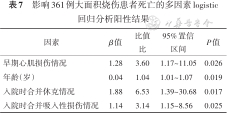 影响361例大面积烧伤患者死亡的多因素logistic回归分析阳性结果