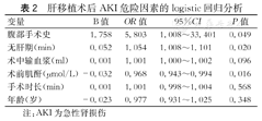分析影响肝移植术后急性肾损伤(acute kidney injury,AKI)发生的危险因素。