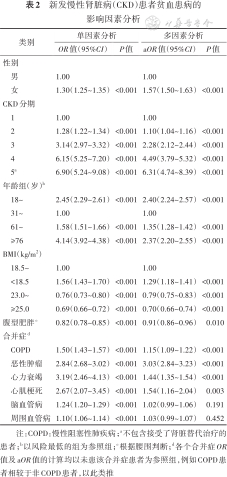 新发慢性肾脏病(CKD)患者贫血患病的影响因素分析