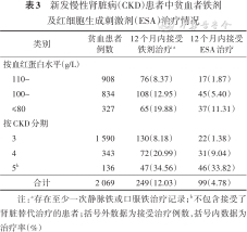 新发慢性肾脏病(CKD)患者中贫血者铁剂及红细胞生成刺激剂(ESA)治疗情况