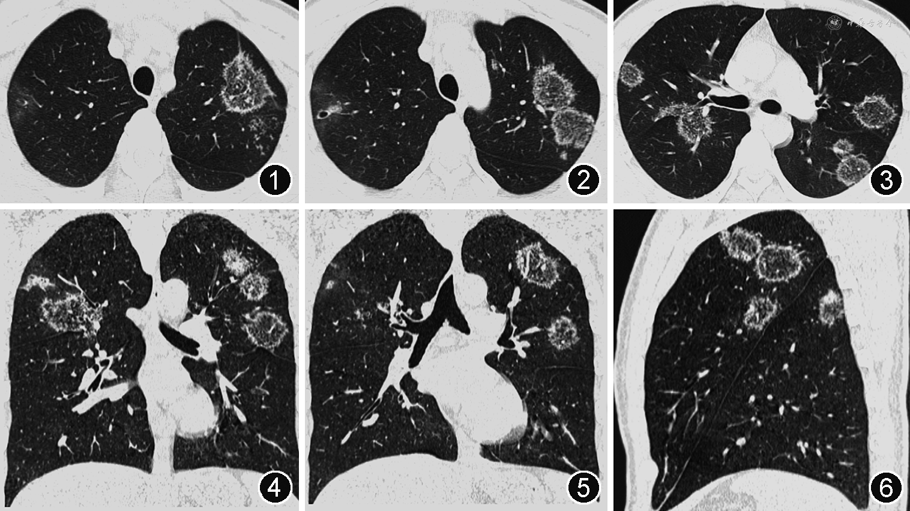综上,反晕征的疾病谱比较广泛,需结合临床资料具体分析。NRHS的出现则高度提示肉芽肿性疾病,在感染性肉芽肿性疾病中主要为活动性肺结核,代表着病灶沿支气管的播散[4]。表现为NRHS的肺结核可能临床症状轻,常规检测阳性率低,需及时完善组织病理学检查,避免漏诊和误诊。
