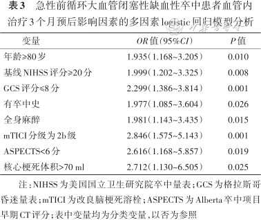 急性前循环大血管闭塞性缺血性卒中患者血管内治疗3个月预后影响因素的多因素logistic回归模型分析
