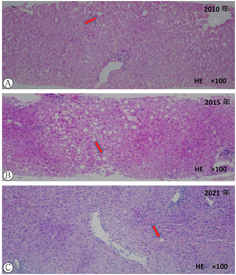 | 肝活检 | 轻度慢性药物性或环境类毒物性肝损伤,病变程度相当于G1S0,肝细胞轻度脂肪变性 | 脂肪性肝炎,不除外慢性药物或环境类毒物等诱导所致,病变程度相当于G1S1,肝细胞中毒脂肪变性 | 轻度非特异性肝脏病变(轻度肝脂肪变、糖原核、汇管区轻度炎症) |